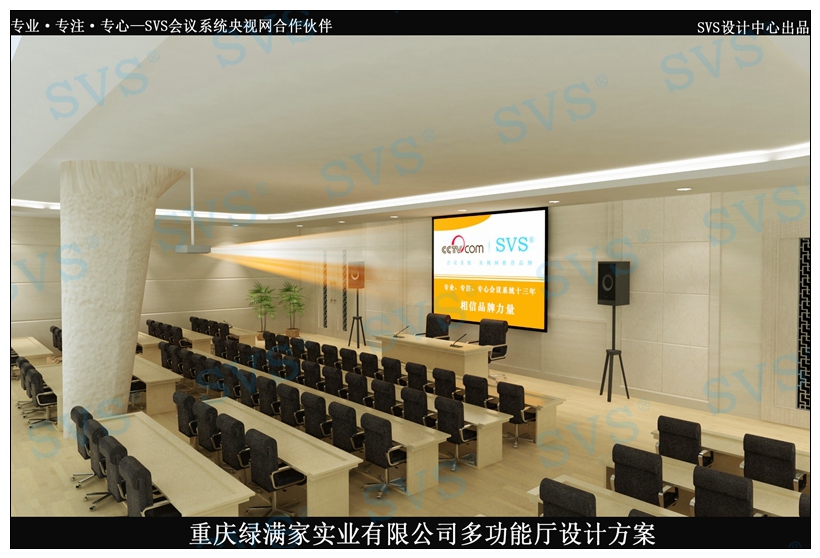 此次迅控SVS為綠滿家實業(yè)(集團)打造一個多媒體會議室,項目使用了SVS中央控制系統(tǒng)、SVS無線發(fā)言系統(tǒng)、SVS專業(yè)會議系統(tǒng)、SVS專業(yè)矩陣系統(tǒng)等設備。實現(xiàn)功能:會場設備開關控制燈光控制實現(xiàn)會場投影型號任意切換通過墻體弱點信號面板實現(xiàn)信號的時時輸入