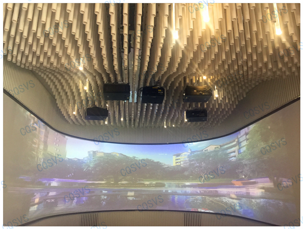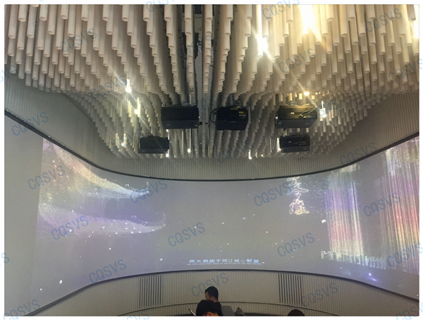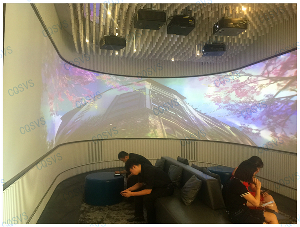 在我司設(shè)計(jì)部和工程部幾次考察現(xiàn)場后,通過和開發(fā)商不斷溝通協(xié)調(diào),最終確定采用激光投影融合的方式在展廳休息區(qū)打造成一個(gè)環(huán)幕影院。作為展示廳沙盤系統(tǒng)的補(bǔ)充,環(huán)幕影院聲色具備的動(dòng)態(tài)視頻展示系統(tǒng)更能直達(dá)觀眾內(nèi)心,增加顧客的體驗(yàn)度,激發(fā)顧客購買意愿。該項(xiàng)目啟動(dòng)時(shí)就面臨工期緊張的問題,為了能夠在指定周期內(nèi)圓滿完工,工程部向總帶領(lǐng)團(tuán)隊(duì)小伙伴加班加點(diǎn)抓工期,最終該項(xiàng)目順利竣工驗(yàn)收,也獲得了用戶的高度評價(jià)!